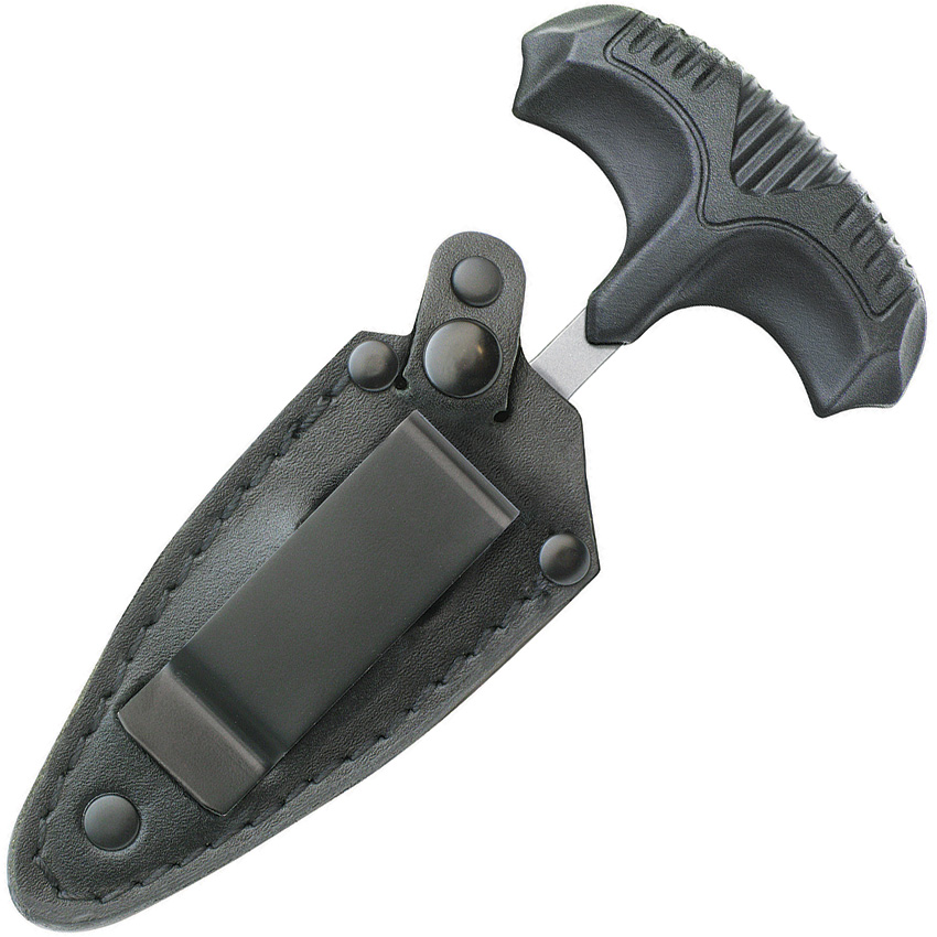 Honshu Push Dagger. 5.88″ overall. 3.38″ satin finish double edge 7Cr17MoV stainless dagger blade. Black TPR handle. Black leather belt sheath. Boxed.