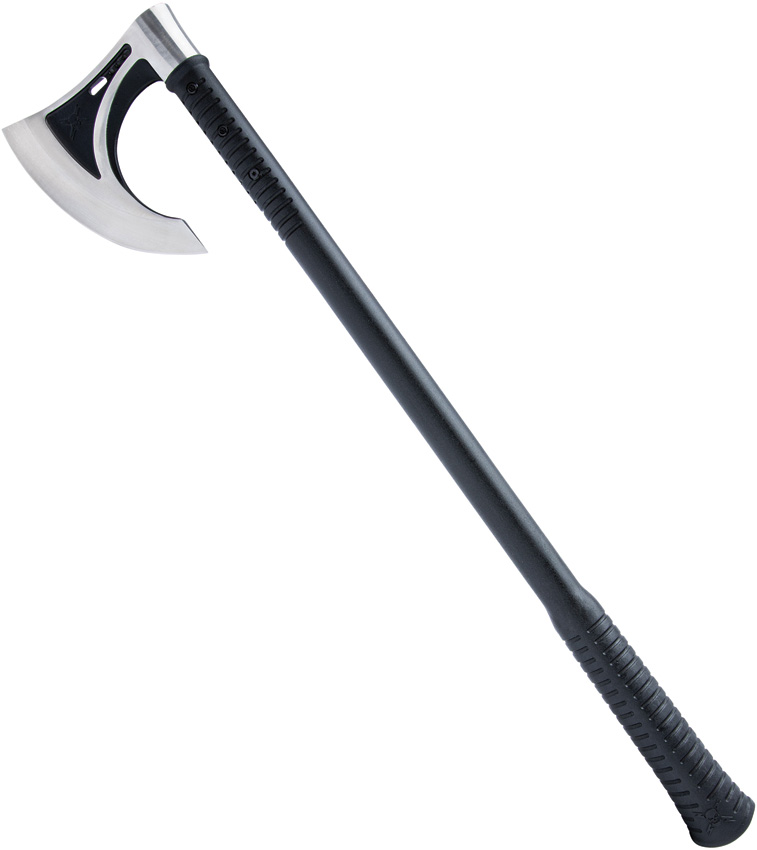 27.5″ overall. 6.25″ two-tone finish 3Cr13 stainless axe head with 6.88″ cutting edge. Black injection molded, nylon reinforced fiberglass handle. Injection molded TPU and nylon belt sheath. Boxed.