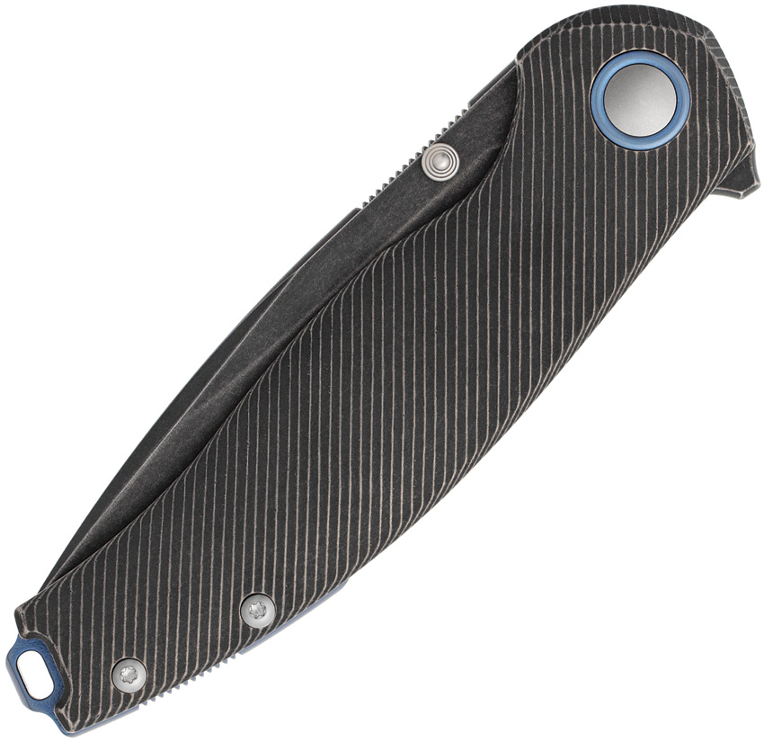 4.13″ (10.49cm) closed. 3″ (7.62cm) black stonewash finish MagnaCut steel blade. Black stonewash finish titanium handle. Extended tang. Thumb stud. Lanyard hole. Pocket clip. Boxed.
