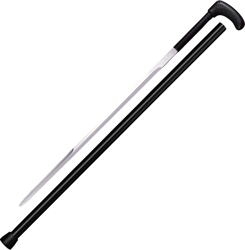 Construction: 3Cr13 Stainless; Overall: 38.625″; Blade: 24.25″ l Stainless; Handle: Black l Grivory; Other Info: 5.5mm thick blade. Sturdy enough for both cutting and thrusting with one long cutting edge. Black 2mm thick aluminum shaft. Extra strong, partial crook handle. Rubber ferrule for traction. Boxed.