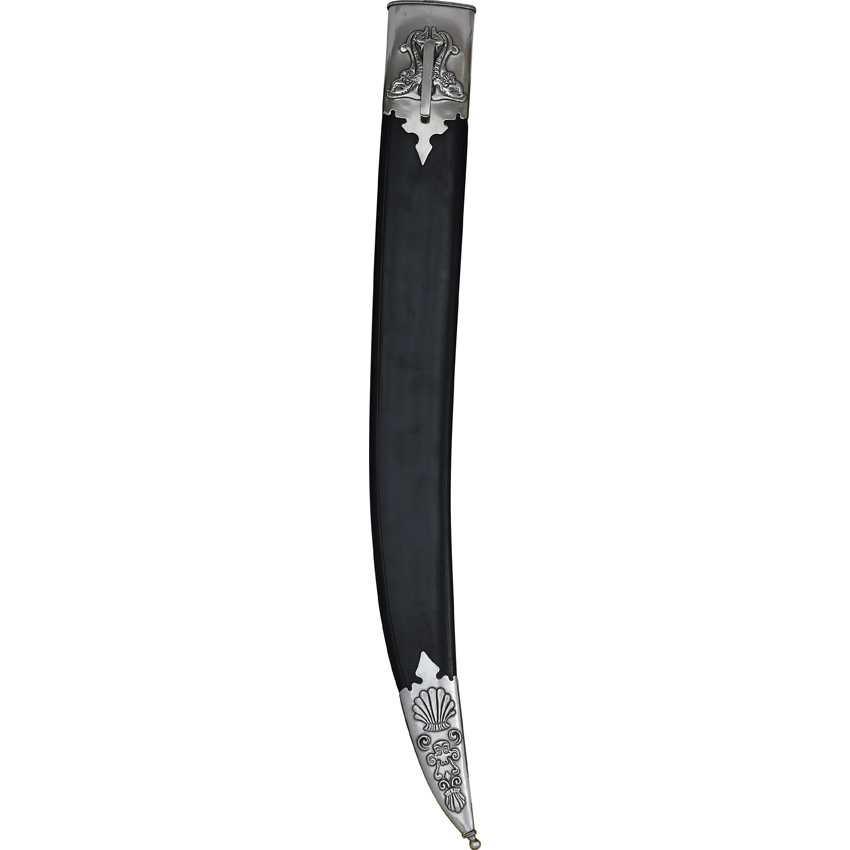 33″ (83.82cm) overall. 26″ (66.04cm) satin finish stainless blade. Metal handle and twisted basket guard. No scabbard. Boxed.