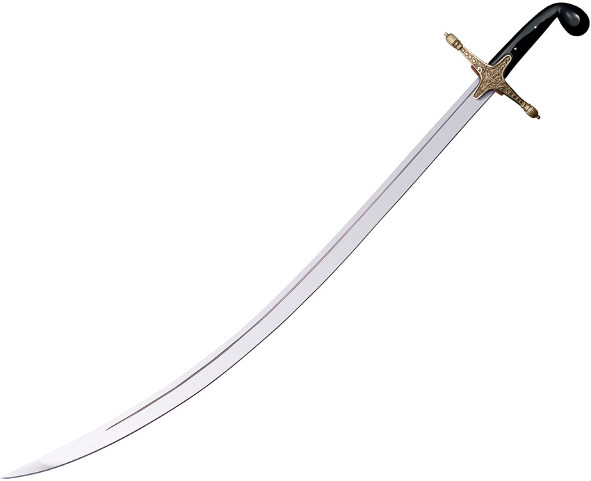 Construction: 1055 Carbon Steel; Overall: 36.25″; Blade: 30.5″ l Carbon Steel l Standard Edge; Handle: Black; Other Info: Hard spring temper that will pass the British Proof Test. Imitation horn handle with brass guard. Double ringed leather scabbard with brass throat and chape. Boxed.