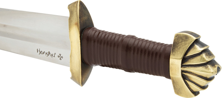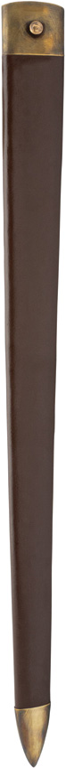 38.5″ (97.79cm) overall. 31.5″ (80.01cm) satin finish 1085HC steel blade. Brown leather wrapped handle. Brass guard and pommel. Brown wood scabbard. Boxed.
