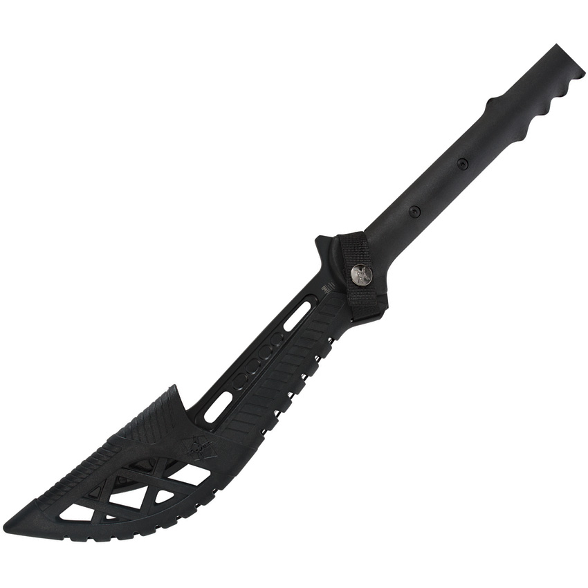 57.5″ (146.05cm) overall. 10″ (25.4cm) two-tone finish 2Cr13 stainless blade. Black fiberglass and nylon handle. Flexible TPR blade cover. Boxed.