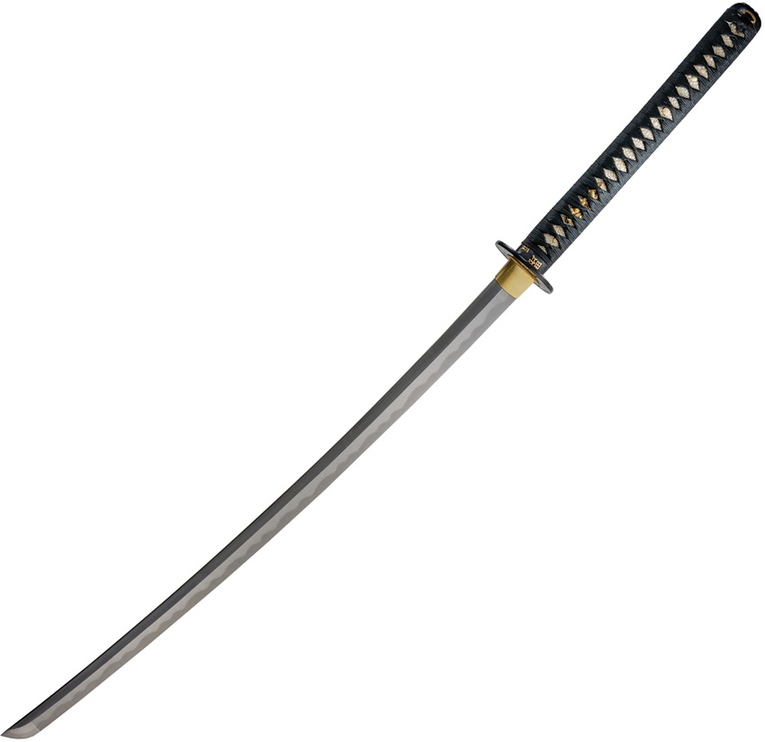 41.25″ (104.78cm) overall. 27.25″ (69.22cm) satin finish T10 High-Speed Tool Steel blade. Black cord wrapped handle. Clay tempered blade. Features the embossed likeness of Uesugi Kenshin replicated from Japanese artwork. Black wood scabbard. Boxed.