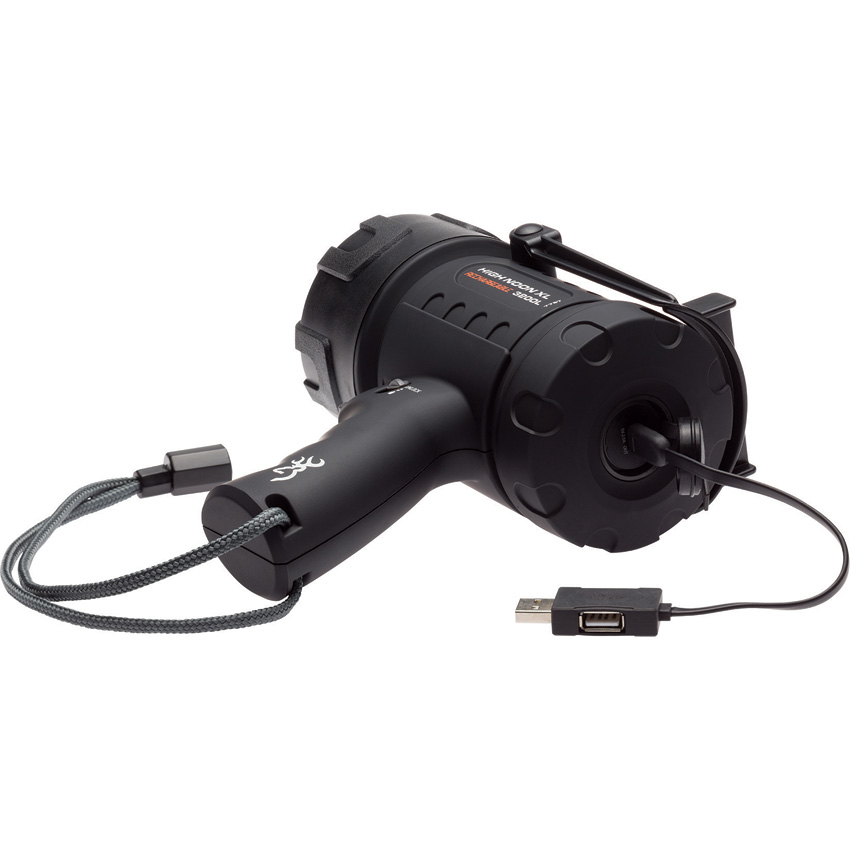 Rechargeable. Modes: High (3200 lumens, 2h 30m runtime); Low (100 lumens, 48h runtime). 475m beam distance. High impact polycarbonate housing with flexible rubber lens ring. USB-C bi-directional charging cable included. Safety lock-out. Built-in folding stand with multiple positions for hands-free use. Waterproof. Submersible. Floats. Power bank allows you to charge USB rechargeable devices. Requires (1) Lithium battery (included). Boxed with hanging tab.