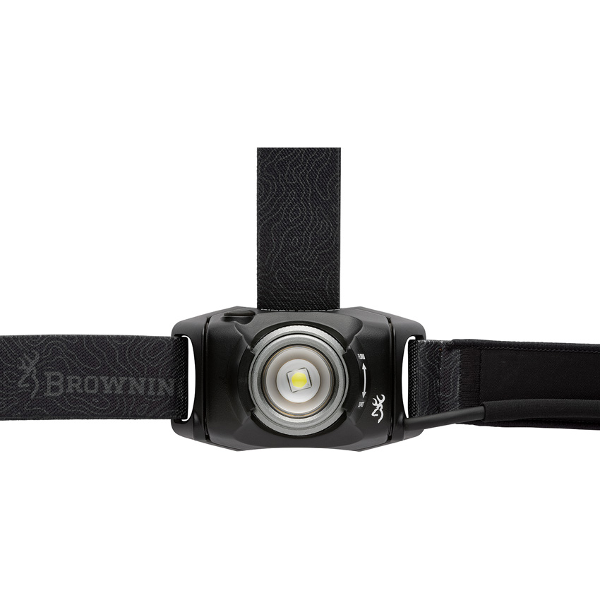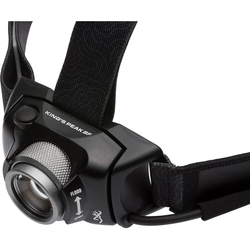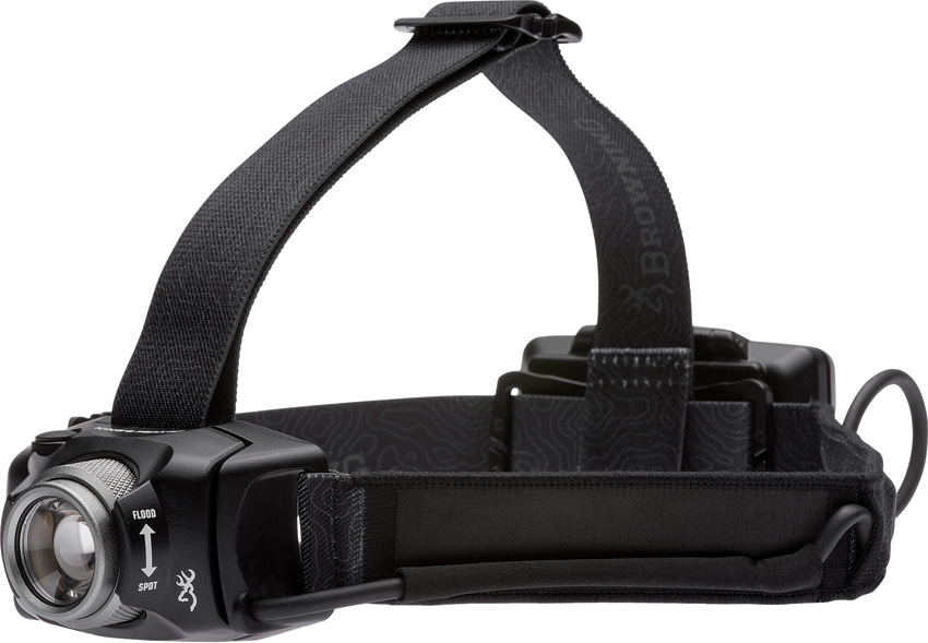 Modes: AA batteries-High (600 lumens, 7h runtime); Medium (180 lumens, 18h runtime); Low (25 lumens, 60h runtime). Li-Ion-High (730 lumens, 3h 30m runtime); Medium (205 lumens, 10h runtime); Low (25 lumens, 30h runtime). Spot to flood. Adjustable double headstrap. Rear-mounted battery pack. Electronic lock-out mode. Low battery indicator. Last light. Quick off. Requires (3) AA batteries (included), or (1) Lithium battery (included). Polymer construction. Color: Black. Boxed with hanging tab.