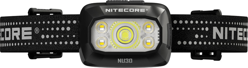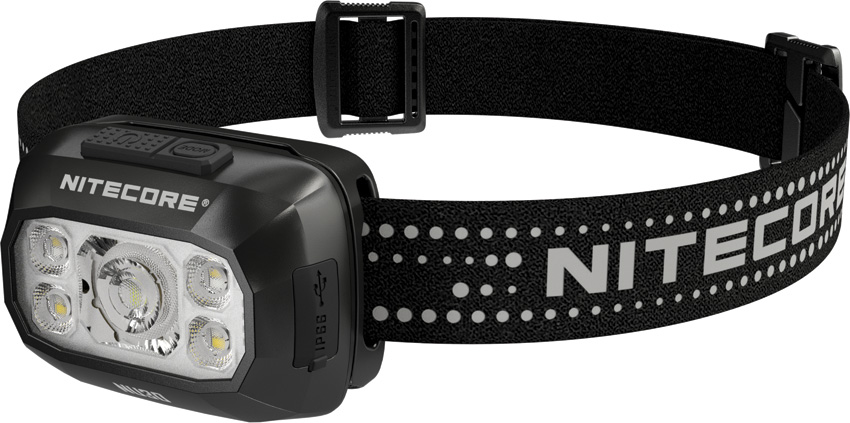 Dimensions: 2.45″ x 1.78″ x 1.22″. Water resistant. Impact resistant. Rechargeable. SOS strobe. 4-core UHE LED. High CRI white light and auxiliary red light. Dual button interface. USB-C charging port. Skin friendly reflective headband and bracket included. Lockout mode. Modes: White-High (500 lumens, 4h runtime); Mid (200 lumens, 8h runtime); Low (100 lumens, 24h runtime); Aux-White-Flood Low (50 lumens, 32h runtime); Ultralow (6 lumens, 97h runtime); Aux-red High (20 lumens, 21h runtime); Low (5 lumens, 73h runtime). 130m beam distance. Requires (1) Lithium battery (included). PC construction. Color: Black. Boxed with hanging tab.
