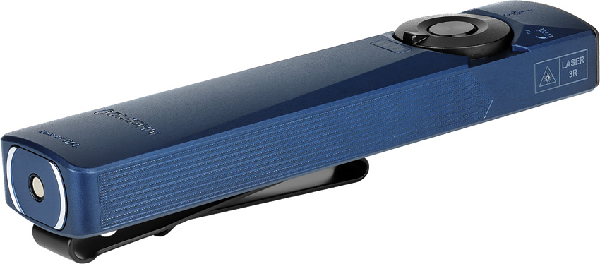 Dimensions: 4.72″ x 0.63″ x 1.06″. Water resistant. Impact resistant. Rechargeable. Strobe. Clip. Cool white LED. Green laser. UV light. Modes: Turbo (1400-420 lumens, 4+121m runtime); High (420-100 lumens, 135+12m runtime); Medium (100 lumens, 9h 45m runtime); Low (15 lumens, 55h runtime); Moon (1 lumen, 11 days runtime). MCC1A magnetic USB charging. 103m beam distance. Requires (1) Lithium battery (included). Aluminum construction. Color: Navy blue. Boxed.