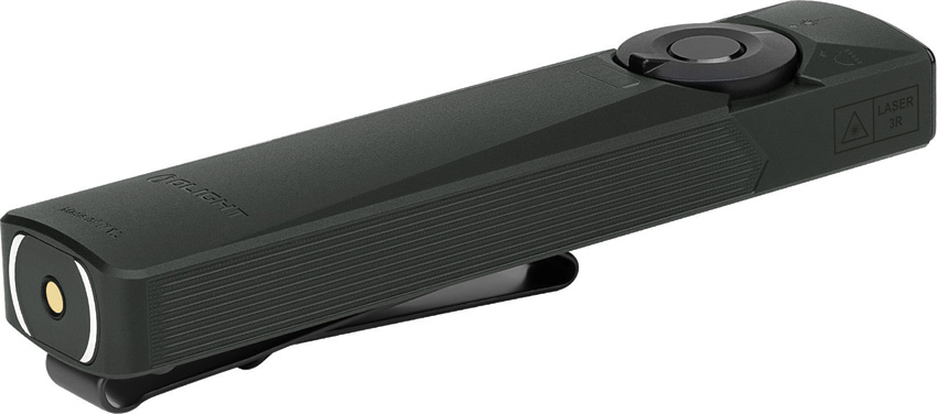 Dimensions: 4.72″ x 0.63″ x 1.06″. Water resistant. Impact resistant. Rechargeable. Strobe. Natural white LED. Green laser. UV light. Modes: Turbo (1400-420 lumens, 4+121m runtime); High (420-100 lumens, 135+12m runtime); Medium (100 lumens, 9h 45m runtime); Low (15 lumens, 55h runtime); Moon (1 lumen, 11 days runtime). MCC1A magnetic USB charging. 103m beam distance. Requires (1) Lithium battery (included). Aluminum construction. Color: Olive gray. Boxed.