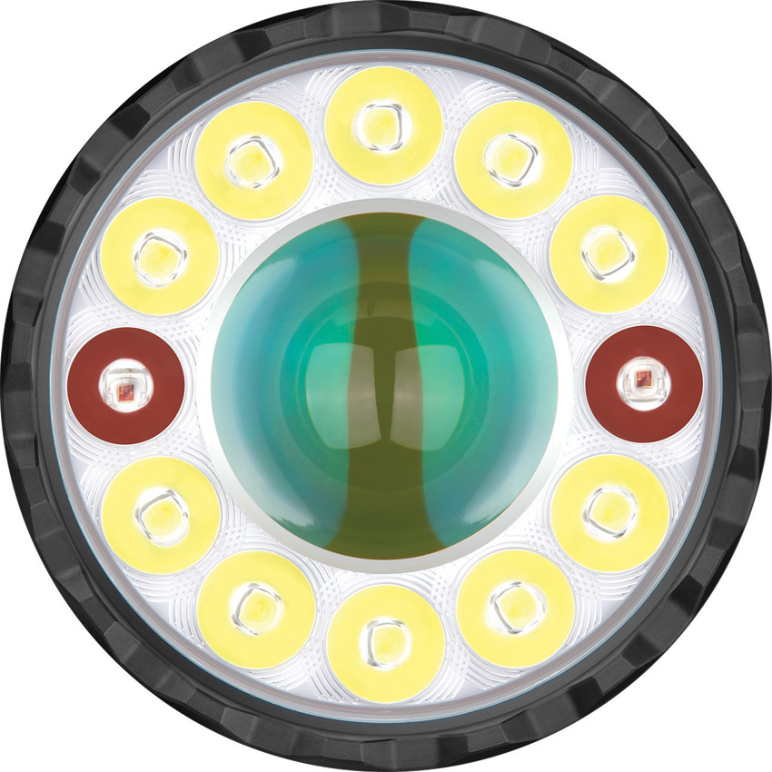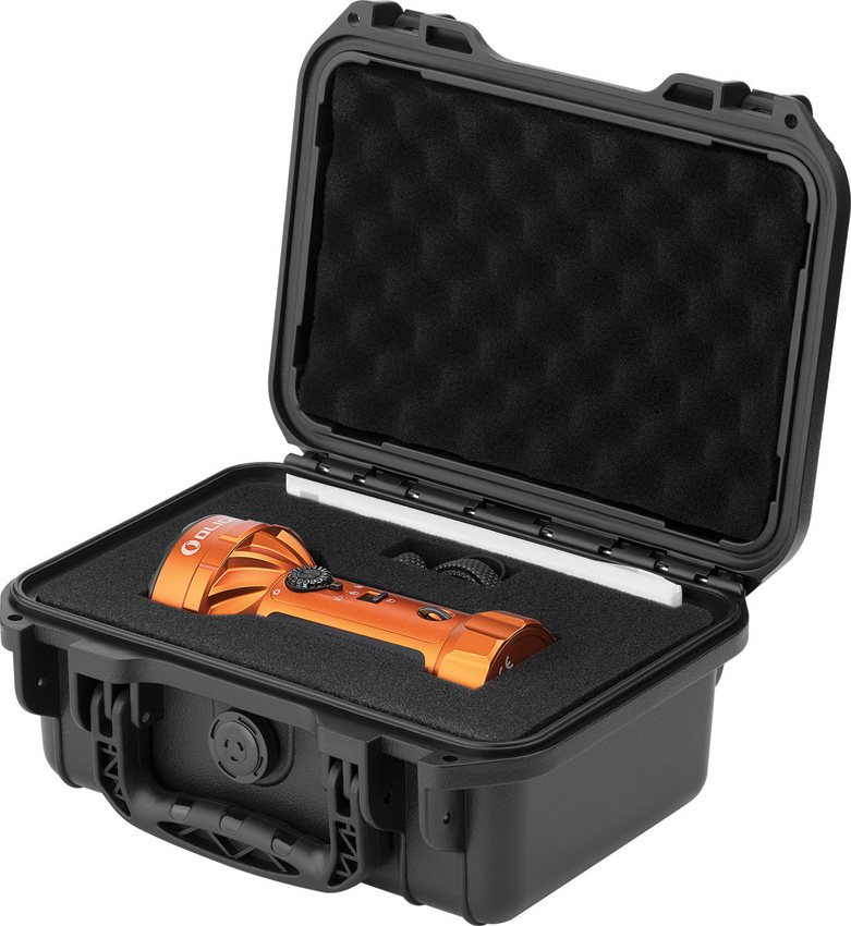 Dimensions: 5.25″ x 2.6″ x 1.69″. Water resistant. Impact resistant. Rechargeable. Lanyard. Five lighting configurations: Floodlight, Spotlight, Spot/flood light, Red light, Side light. Modes: Flood-L4-2 (10,000-2500 lumens, 2+90m runtime); L4-1 (5000-2500-550 lumens, 4+90+80m runtime); L3-2 (2500-1200-600 lumens, 30+60+80m runtime); L3-1 (1200-600-150 lumens, 3+1+3h runtime); L2-2 (600-150 lumens, 13+3h runtime); L1-2 (150 lumens, 27h runtime); L1-1 (1.5 lumens, 50 day runtime). Spotlight-L4-2 (1350-600-400 lumens, 4+170+50m runtime); L4-1 (1000-600-400-135 lumens, 8+170+60+170m runtime); L3-2 (800-600-400-100 lumens, 15+220+50+200m runtime); L3-1 (600-400-100 lumens, 3+1+3h runtime); L2-2 (400-100 lumens, 6+4h runtime); L1-2 (100 lumens, 30h runtme); L1-1 (50 lumens, 62h runtime); Moonlight (0.5 lumens, 95 day runtime). Flood/Spot L4-2 (8000-1800 lumens, 2+120m runtime); L4-1 (6000-1800-1000 lumens, 4+120+60m runtime); L3-2 (3500-1000-700 lumens, 6+130+50m runtime); L3-1 (1800-700-100 lumens, 1.5+1.5+1h runtime); L2-2 (1000-300 lumens, 3+2.5h runtime); L2-1 (7000-300 lumens, 5.5+2.5h runtime); L1-2 (300 lumens, 14h runtime); L1-1 (100 lumens, 37h runtime); Moonlight (2 lumens, 40 day runtime); Red L4 (400-120-40 lumens, 2+5+10h runtime); L3 (100-30 lumens, 15+10h runtime); L2 (25 lumens, 84h runtime); L1 (5 lumens, 8.5 day runtime); Moonlight (1 lumen, 35 day runtime); Side L4 (200-100-30 lumens, 3+3+11h runtime); L3 (100-30 lumens, 10h runtime); L2 (25-5 lumens, 65+20h runtime); L1 (5 lumens, 10 day runtime); Moonlight (0.5 lumens, 150 day runtime). Strike bezel. MCC3 magnetic charging port. Silicone boday surface. Side light emitter. USB-C port. Toggle switch. Rotary knob and selector. Hidden lanyard hole. Requires (1) Lithium battery (included). Aluminum construction. Color: Orange. Boxed.