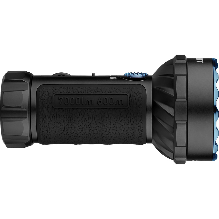 5.13″ overall. Lanyard. Water resistant. Impact resistant. Strobe. Weight: 16.3oz. High performance cool white LED. TIR lens. Rotary knob switch. Red, green, and blue lights. 600m beam distance. MCC3 magnetic charging cable. 2.58″ bezel diameter. Comes with holster. Modes: Floodlight-Level 1 (7000-1600-900 lumens, 2+160+10m runtime); Level 6 (3200+1300-450 lumens, 10-170+10m runtime); Level 5 (1600-800-200 lumens, 160+10+15m runtime); Level 4 (800-400-200 lumens, 320+5+15m runtime); Level 3 (400-180-90 lumens, 630+10+10m runtime); Level 2 (200 lumens, 21h runtime); Level 1 (100 lumens, 35h 30m runtime). Spotlight-Level 1 (900-500-330 lumens, 10+200+40m runtime); Level 6 (700-500-105 lumens, 40+175+45m runtime); Level 5 (500-300-100 lumens, 220+30+20m runtime); Level 4 (300-100 lumens, 420+20m runtime); Level 3 (200 lumens, 1h 30m runtime); Level 2 (100 lumens, 2h 30m runtime); Level 1 (50 lumens, 43h 30m runtime); Red light-Level 4 (200-180-120-80-40 lumens, 5+305+10+10+10m runtime); Level 3 (150-135-90-45 lumens, 100+430+10+10m runtime); Level 2 (100 lumens, 16h 30m runtime); Level 1 (50 lumens, 30h runtime). Green light-Level 4 (220-200-120-90 lumens, 30+250+10+10m runtime); Level 3 (180-170-90 lumens, 490+10+10m runtime); Level 2 (140 lumens, 14h runtime); Level 1 (100 lumens, 22h 30m runtime). Blue light-Level 4 (120-40 lumens, 260+40m runtime); Level 3 (100-40 lumens, 420+10m runtime); Level 2 (80 lumens, 10h 30m runtime); Level 1 (55 lumens, 17h runtime). Requires (1) Lithium battery (included). Aluminum construction. Color: Black. Boxed.