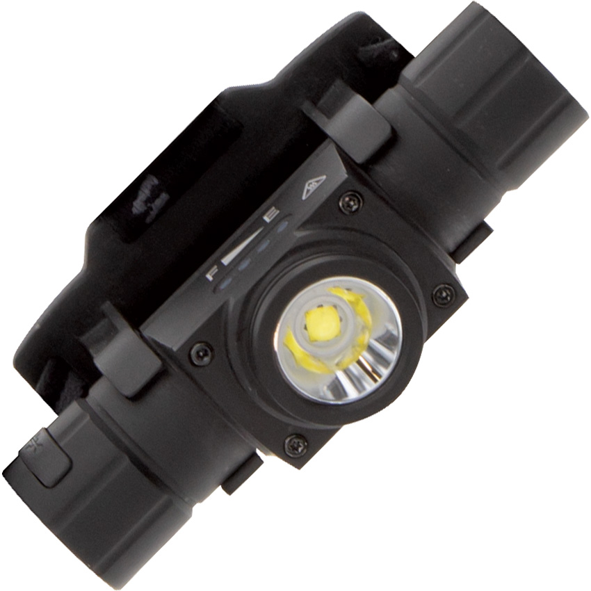 Rechargeable. Water resistant. Impact resistant. SOS strobe. Strobe. CREE XHP 50.2 LED. Modes: Turbo (2000 lumens, 1.5h runtime); High (750 lumens, 2.5h runtime); Medium (200 lumens, 5h runtime); Low (20 lumens, 30h runtime). 144m beam distance. 180 degree lamp rotation. Fully adjustable elastic headband. Single button control. USB charging cord. Aluminum construction. Color: Black. Boxed with hanging tab.