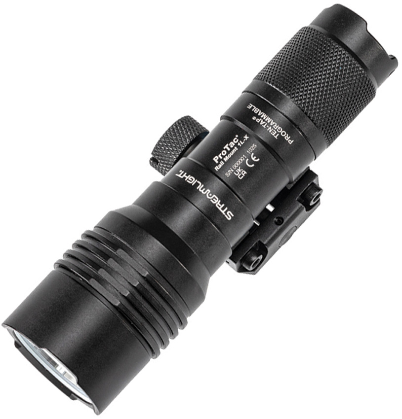 4.75″ overall. Tailcap switch. Water resistant. Impact resistant. Rechargeable. Weapon mountable. Strobe. Modes: SL-BB-High (850 lumens, 30m runtime); Low (100 lumens, 4.5h runtime); 346m beam distance. CR123A-High (500 lumens, 1.75h runtime); Low (100 lumens, 6.5h runtime); 268m beam distance. Designed for short-barreled rifles, carbines, and submachine guns. Integrated MIL-STD-1913 rail clamp and included M-LOK adapter. Multi-fuel: Uses (1) SL-B9 protected Li-Ion rechargable battery pack (included) or (1) CR123A lithium battery (not included). TEN-TAP programmable. USB-C charging cord. Aluminum construction. Color: Black. Boxed with hanging tab.