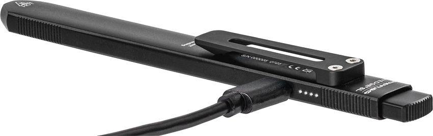 Dimensions: 5.65″” x 0.63″” x .28″”. Rechargeable. Water resistant. Impact resistant. Tailcap switch. Clip. Weight: 1.14oz. Modes: THRO (500 lumens); Constant-on High (100 lumens, 1.75h runtime); Constant-on Low (50 Lumens, 3.5h runtime). 80m beam distance. Requires (1) Lithium battery (included). Aluminum construction. Color: Black. Clam packed.
