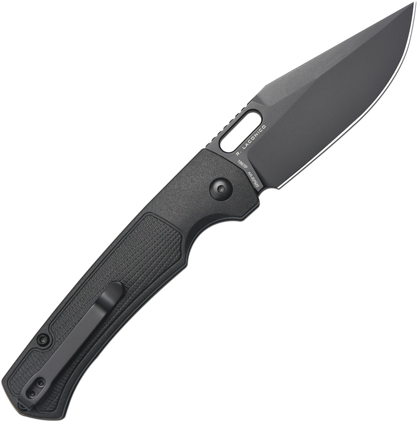 4.5″ (11.43cm) closed. 3.5″ (8.89cm) black PVD coated AR-RPM9 stainless clip point blade. Black FRN handle. Thumb pull. Pocket clip. Black nylon zippered storage case. Boxed.