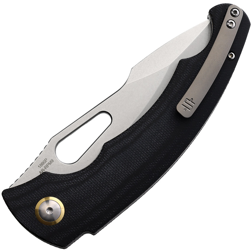5″ (12.7cm) closed. 3.75″ (9.53cm) stonewash finish AR-RPM9 stainless blade. Black micarta handle. Pocket clip. Thumb pull. Boxed.