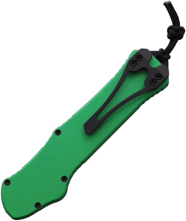 Automatic opening. 5.5″ (13.97cm) closed. 3.63″ (9.22cm) two-tone finish MagnaCut steel blade. Toxic green aluminum handle. Pocket clip. Lanyard hole. Recurve blade. Boxed.