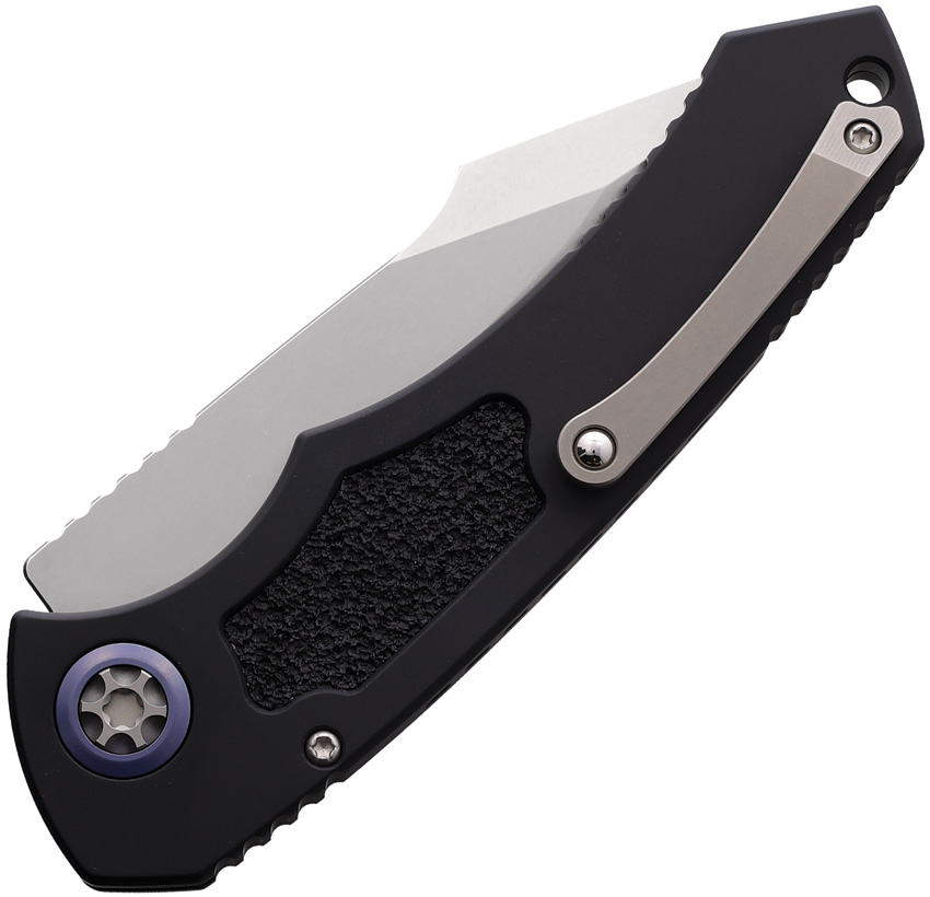 Automatic opening. 5.13″ (13.03cm) closed. 3.75″ (9.53cm) stonewash finish CPM MagnaCut stainless drop point blade. Black aluminum handle with black grip tape inlay. Lanyard hole. Pocket clip. Boxed.