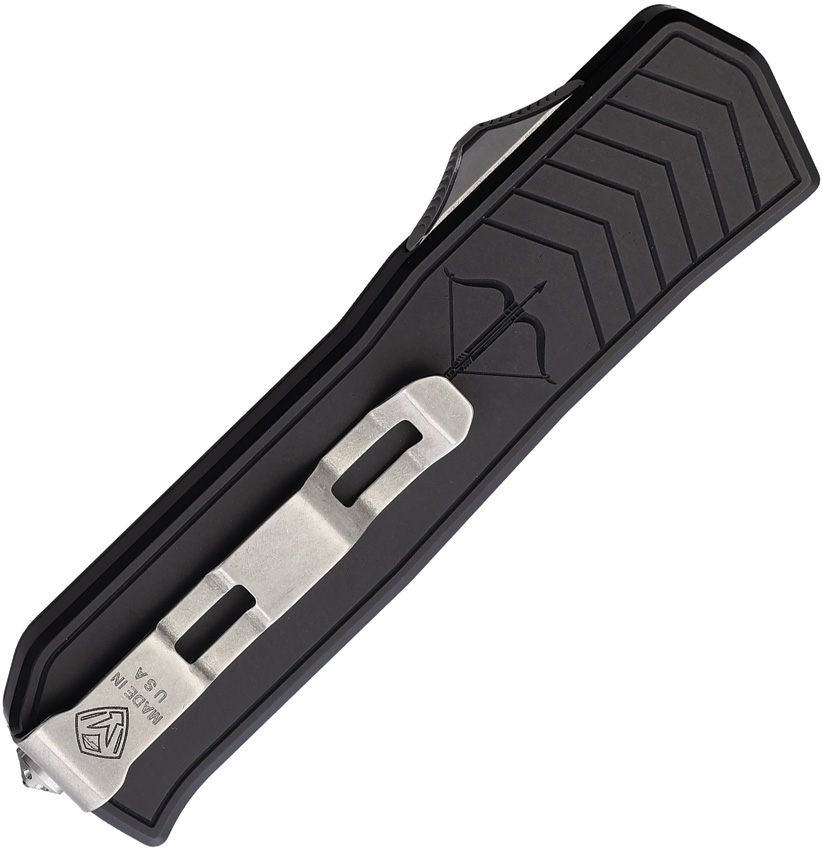 Automatic opening. 5″ (12.7cm) closed. 3.75″ (9.53cm) tumbled finish S45VN stainless tanto blade. Black aluminum handle. Pocket clip. Glass breaker. Tumbled hardware. Black nylon zippered storage case. Boxed.