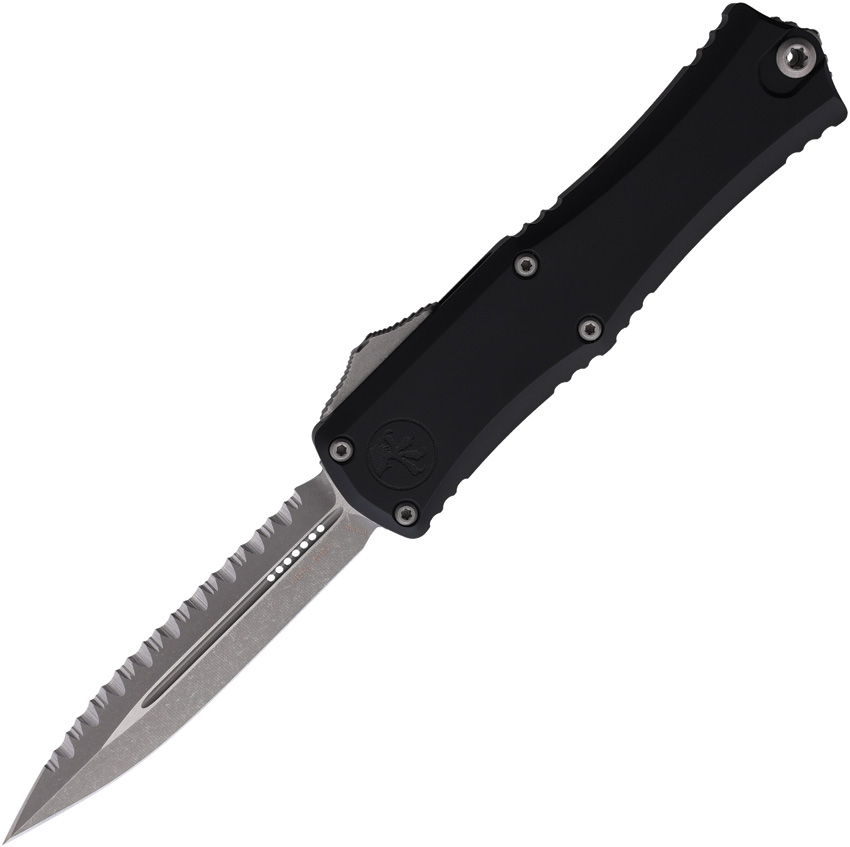 Automatic opening. 4″ (10.16cm) closed. 3″ (7.62cm) Apocalyptic finish serrated Bohler M390MK stainless dagger blade. Black aluminum handle. Pocket clip. Lanyard hole. Glass breaker. 30th anniversary edition. Double edge blade. Boxed.