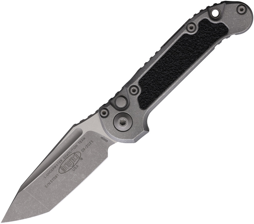 Automatic opening. 4.5″ (11.43cm) closed. 3.5″ (8.89cm) Apocalyptic finish Bohler M390MK stainless tanto blade. Weathered aluminum handle with black traction insert. Lanyard hole. Pocket clip. Boxed.