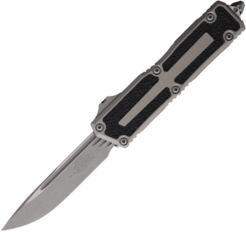 Automatic opening. 5.75″ (14.61cm) closed. 3.9″ (9.91cm) Apocalyptic finish premium steel blade. Gray aluminum handle with black traction insert. Glass breaker. Lanyard hole. Pocket clip. Boxed.