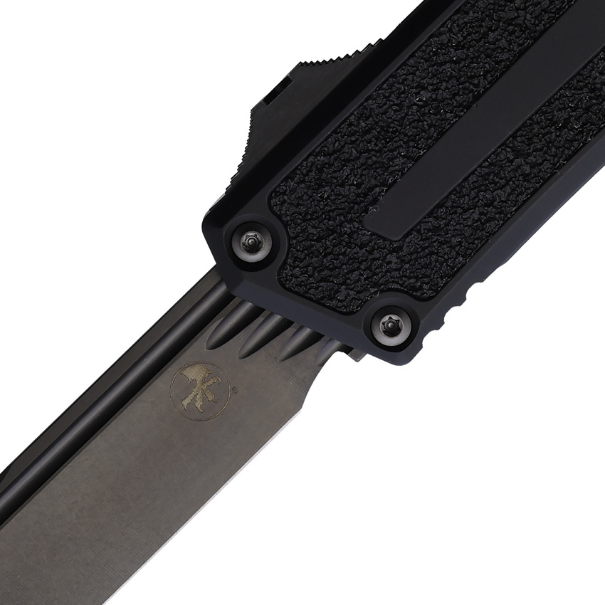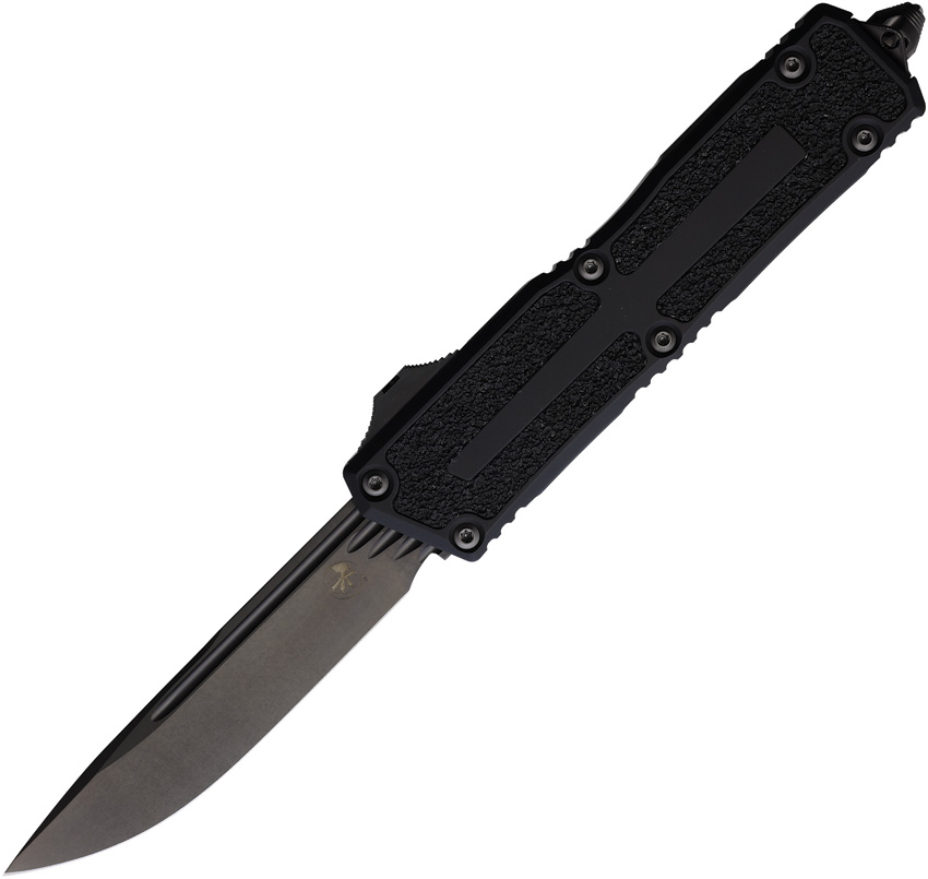 Automatic opening. 5.75″ (14.61cm) closed. 3.9″ (9.91cm) black DLC coated double edge Bohler M390MK stainless blade. Black aluminum handle with black traction insert. Glass breaker. Lanyard hole. Pocket clip. Boxed.