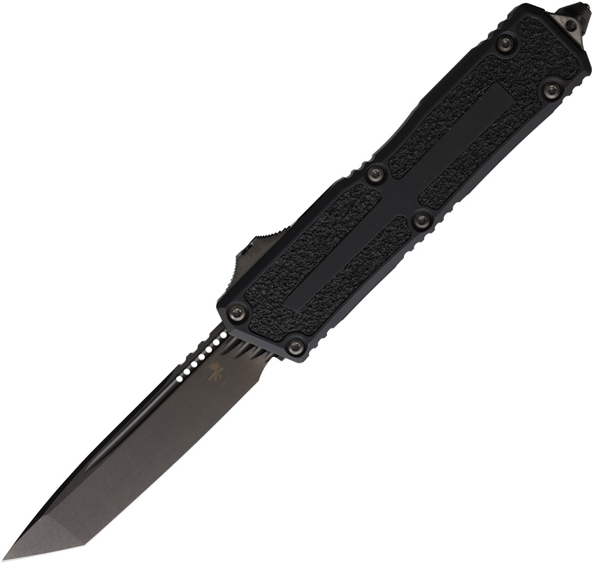 Automatic opening. 5.75″ (14.61cm) closed. 3.9″ (9.91cm) DLC coated Bohler M390MK stainless tanto blade. Black aluminum handle with black traction insert. Glass breaker. Lanyard hole. Pocket clip. Shadow black blade. Boxed.