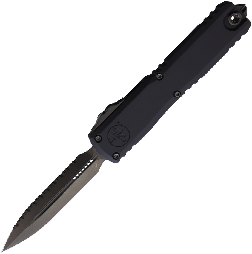 Automatic opening. 5″ (12.7cm) closed. 3.5″ (8.89cm) black DLC coated serrated Bohler M390MK stainless blade. Black Shadow aluminum handle. Glass breaker. Lanyard hole. Pocket clip. Double edge blade. Boxed.