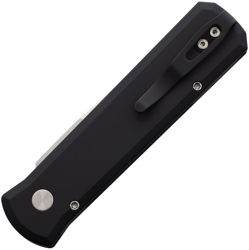 Automatic opening. 4.38″ (11.13cm) closed. 3.13″ (7.95cm) satin finish CPM-20CV stainless spear point blade. Black anodized aluminum handle with Livewire Copper carbon fiber inlay. Pocket clip. Black lip pearl button inlay. Boxed.