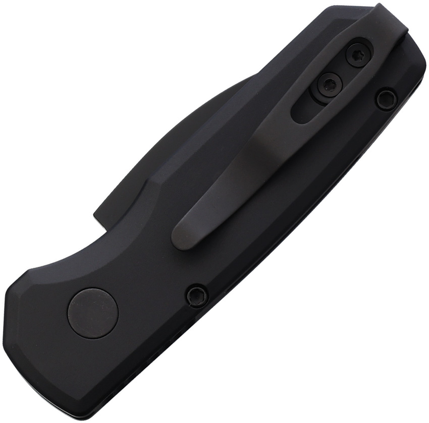 Automatic opening. 3.25″ (8.26cm) closed. 2″ (5.08cm) black DLC coated MagnaCut steel Wharncliffe blade. Black anodized aluminum handle. Pocket clip. Boxed.