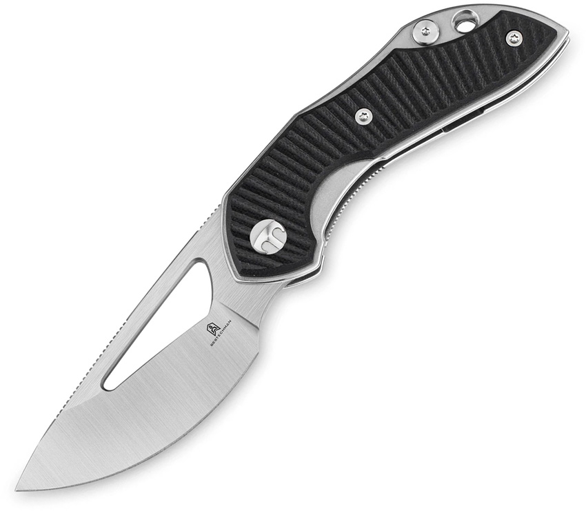 3.5″ (8.89cm) closed. 2.5″ (6.35cm) satin finish 14C28N Sandvik stainless drop point blade. Black G10 handle. Thumb pull. Lanyard hole. Pocket clip. Boxed.