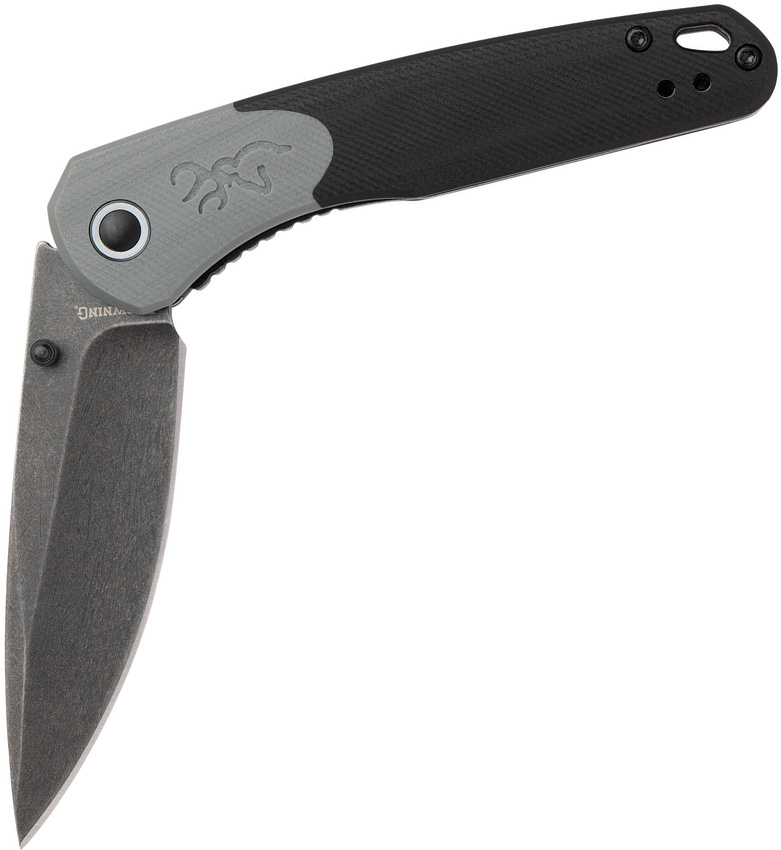 4.25″ (10.8cm) closed. 3.25″ (8.26cm) black stonewash finish D2 tool steel drop point blade. Black and gray G10 handle. Thumb stud. Extended tang. Lanyard hole. Pocket clip. Boxed.