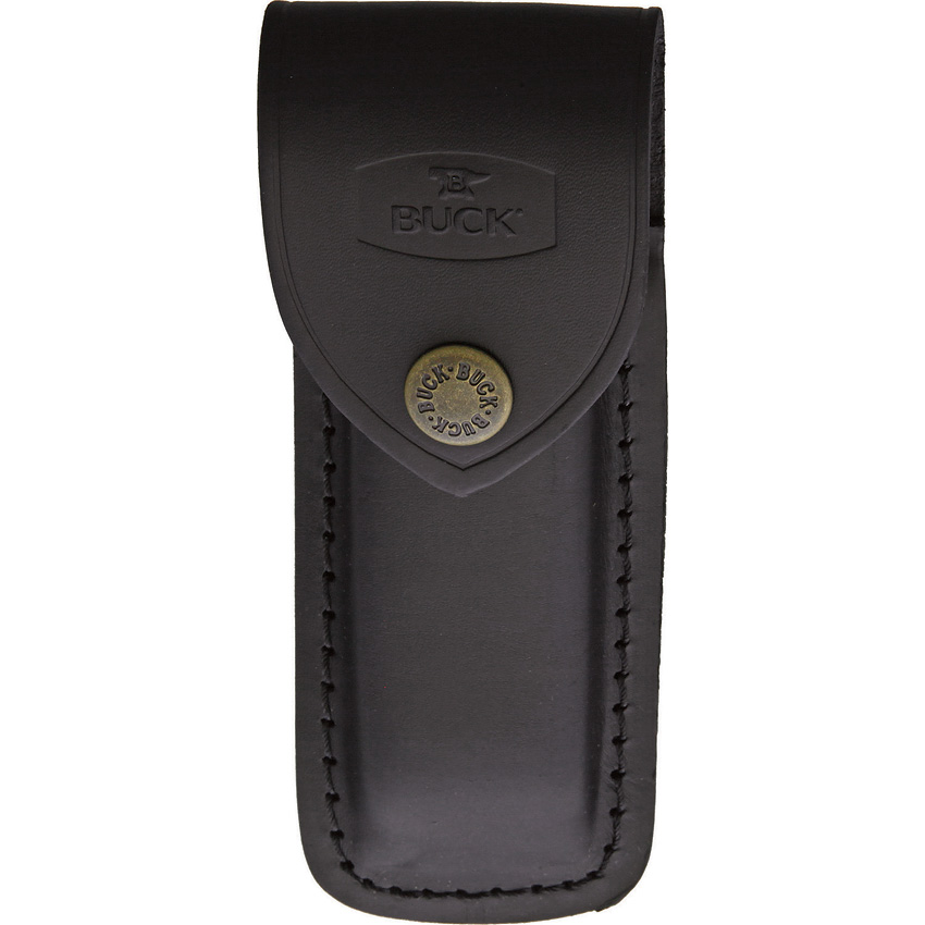 Hunter Lockback. 4.88″ closed. 3.75″ 420HC stainless clip point blade. Brass bolster(s). Genuine Crelicam Ebony finger grooved handle. Black leather belt sheath. Boxed.