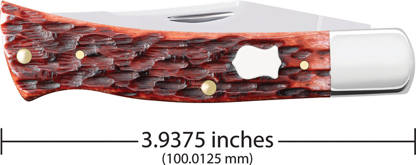 BR61135 SS pattern. 4″ (10.16cm) closed. Mirror finish stainless clip blade. Mahogany Pocket Worn jigged bone handle. Nickel silver bolster(s). Inlay shield. Boxed.