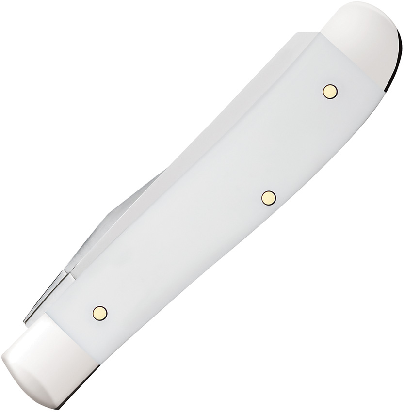 4207 SS pattern. 3.5″ (8.89cm) closed. Mirror finish stainless clip and spey blades. White smooth synthetic handle. Nickel silver bolster(s). Boxed.