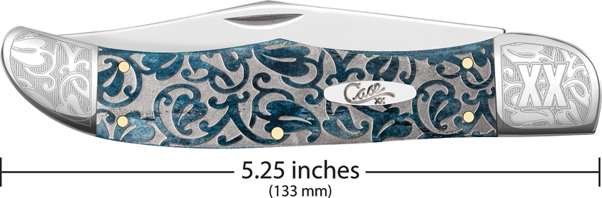 6165 SS pattern. 5.25″ (13.34cm) closed. Mirror finish stainless clip blade. Mediterranean Blue bone handle. Nickel silver bolster(s). Inlay shield. Ivy embellished handle. Boxed.