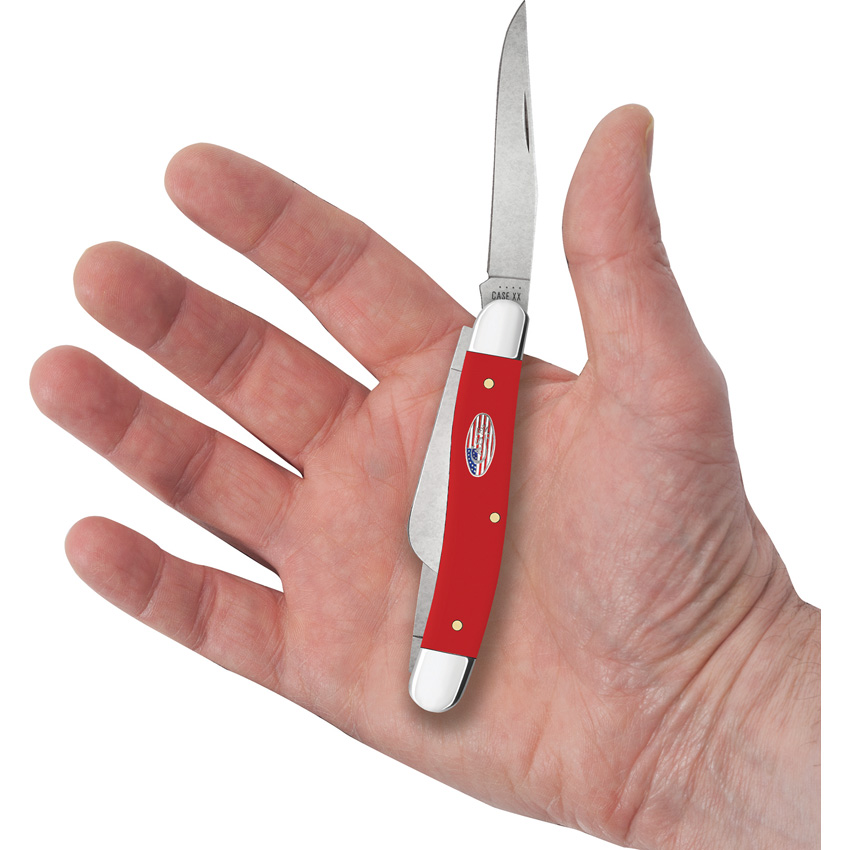 4318 CS pattern. 3.63″ (9.22cm) closed. Stonewash finish carbon steel clip, sheepsfoot, and spey blades. Red smooth synthetic handle. Nickel silver bolster(s). Inlay shield. American Workman Series. Boxed.