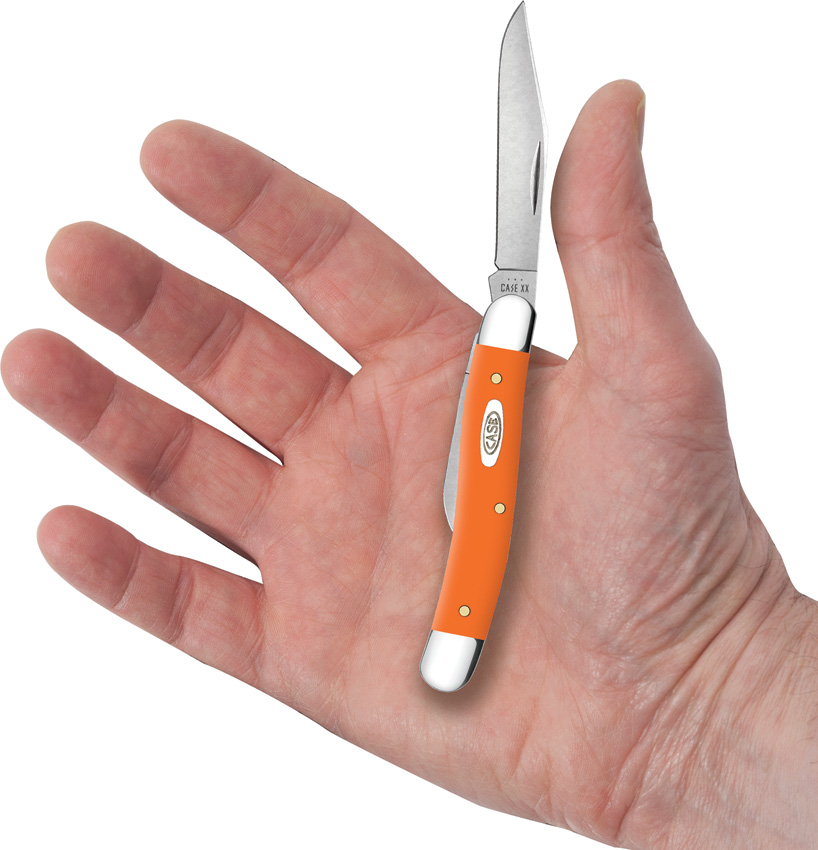 42087 SS pattern. 3.38″ (8.59cm) closed. Stonewash finish stainless clip and pen blades. Orange smooth synthetic handle. Nickel silver bolster(s). Inlay shield. Boxed.