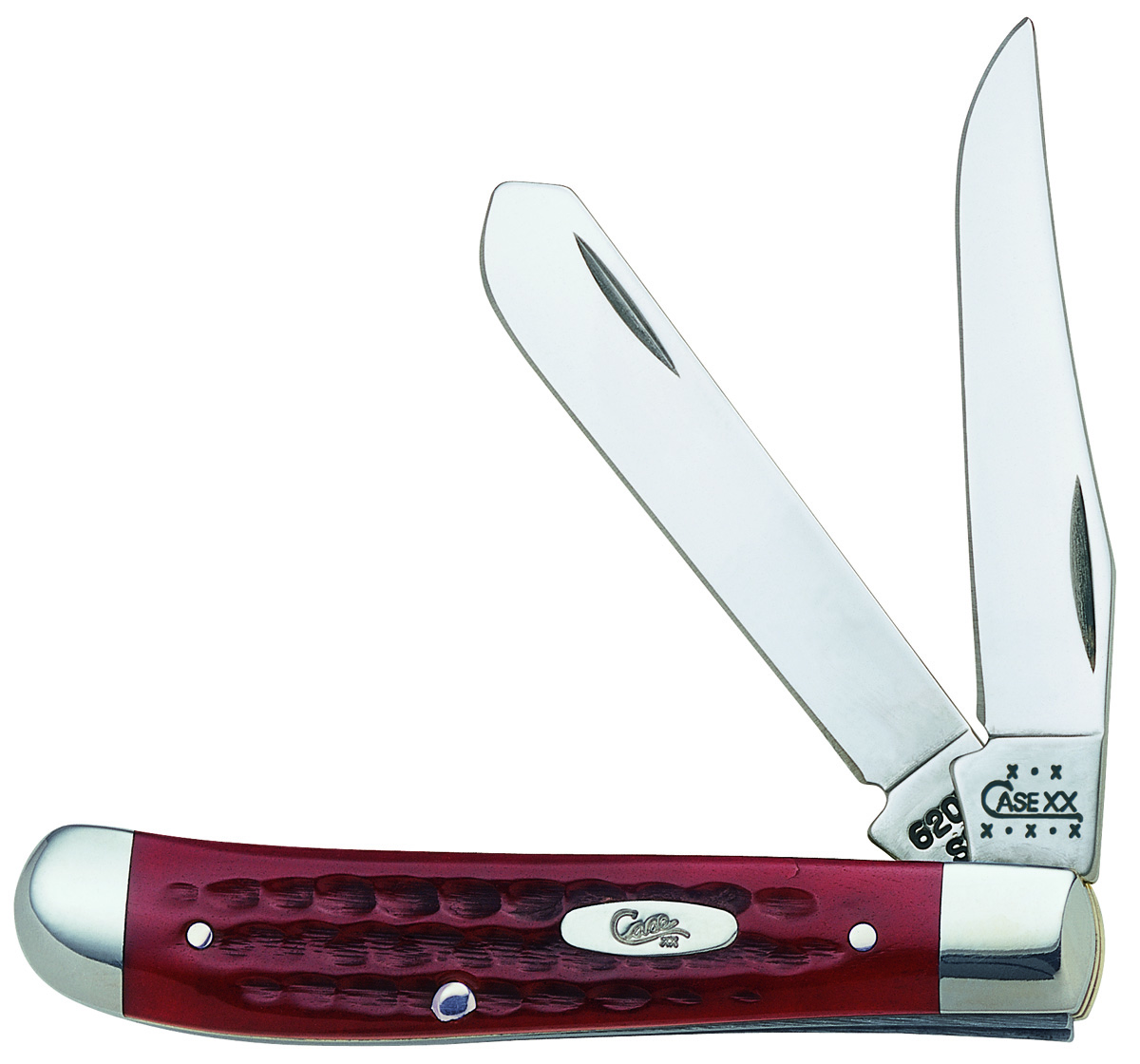 Red Pocket Worn. 6207SS pattern. 3 1/2″ closed. Stainless clip and spey blades. Red jigged bone handles with special hand finishing for a pocket worn feeling. Nickel silver bolsters and script style Case inlay shield.