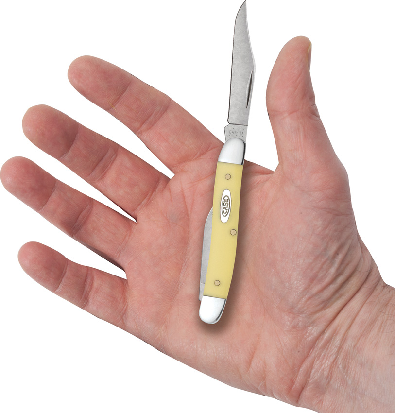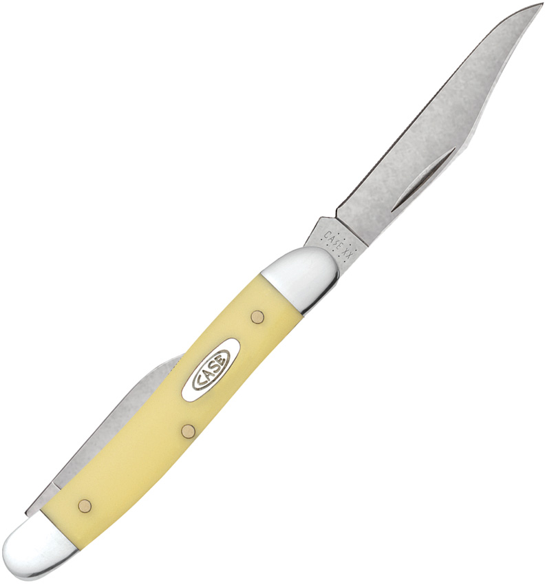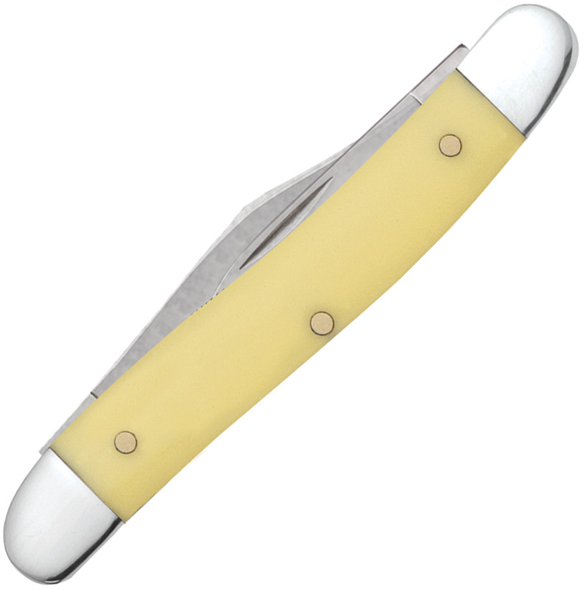 Yellow Synthetic Series. 32087 CS pattern. 3.25″ (8.26cm) closed. Stonewash finish carbon steel clip and pen blades. Yellow smooth synthetic handle. Nickel silver bolster(s). Inlay shield. Boxed.