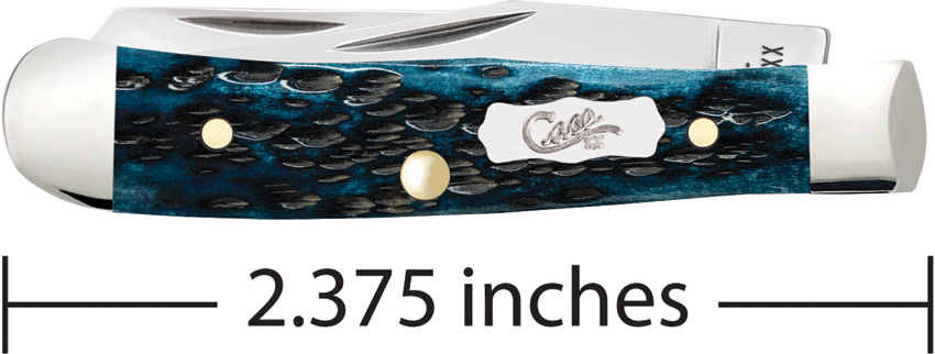 62154 SS pattern. 2.38″ (6.05cm) closed. Mirror finish stainless clip and spey blades. Mediterranean Blue jigged bone handle. Nickel silver bolster(s). Inlay shield. Boxed.
