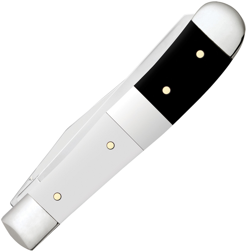 4254 SS pattern. 4.13″ (10.49cm) closed. Mirror finish stainless clip and spey blades. Black and white smooth synthetic handle. Inlay shield. Blade etching. Gift boxed.