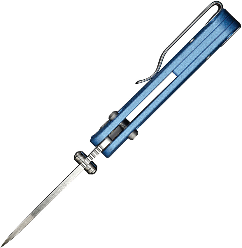 3.25″ (8.26cm) closed. 2.38″ (6.05cm) satin finish Nitro V steel drop point blade. Blue fluted aluminum handle. Thumb stud. Lanyard hole. Pocket clip. Boxed.