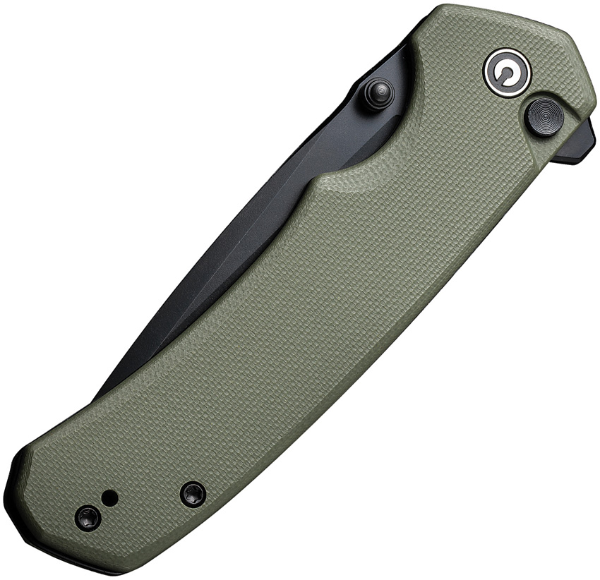4.5″ (11.43cm) closed. 3.5″ (8.89cm) black stonewash finish 14C28N Sandvik stainless tanto blade. OD green G10 handle. Extended tang. Thumb stud. Pocket clip. Black nylon zippered storage case. Boxed.