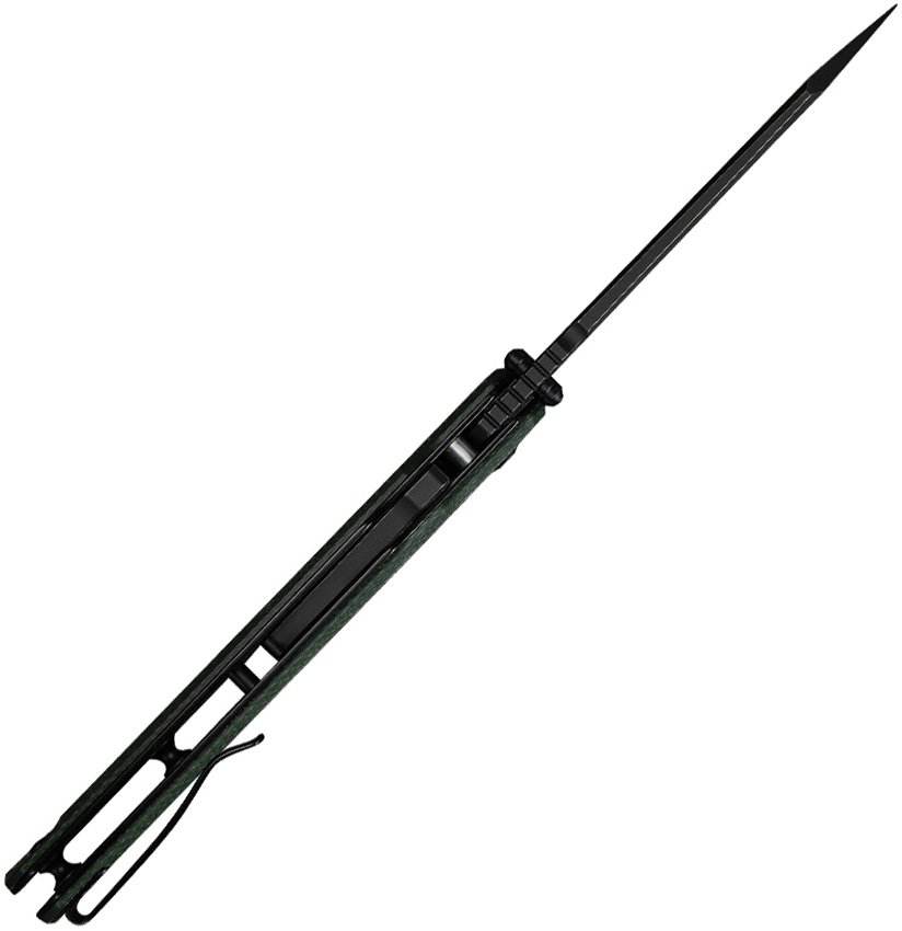5.5″ (13.97cm) closed. 4.25″ (10.8cm) black stonewash finish Nitro V steel sheepsfoot blade. Green canvas micarta handle. Thumb stud. Extended tang. Pocket clip. Black nylon zippered storage case. Boxed.