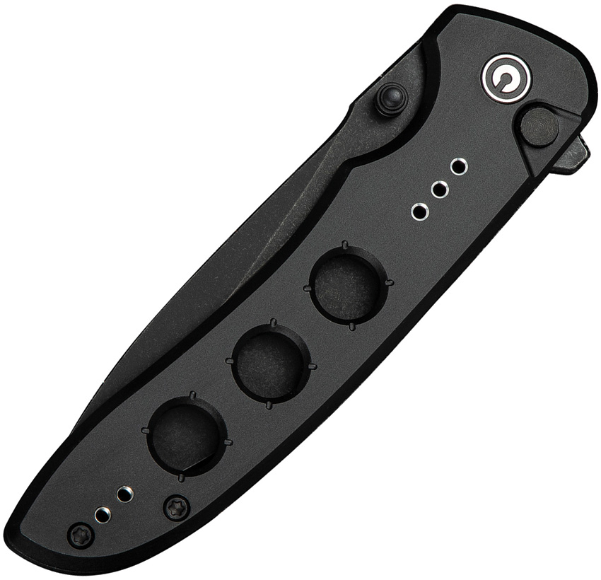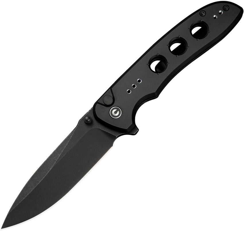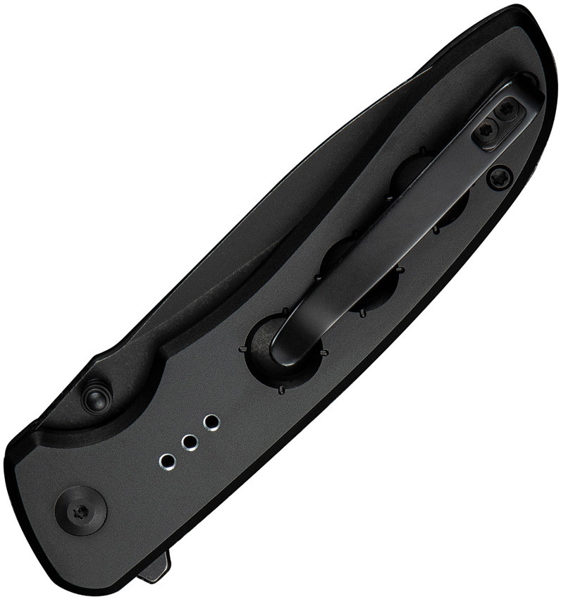 4.5″ (11.43cm) closed. 3.5″ (8.89cm) black stonewash finish 14C28N Sandvik stainless drop point blade. Black aluminum handle. Extended tang. Thumb stud. Pocket clip. Black nylon zippered storage case. Boxed.