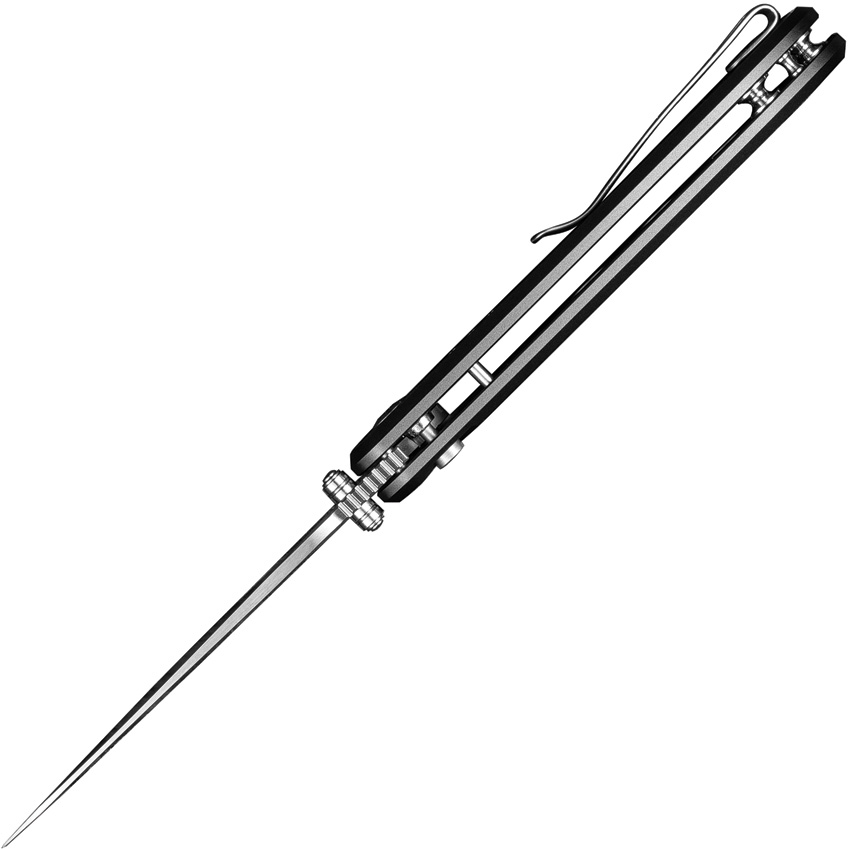 4.5″ (11.43cm) closed. 3.5″ (8.89cm) satin finish 14C28N Sandvik stainless drop point blade. Gray aluminum handle. Extended tang. Thumb stud. Pocket clip. Black nylon zippered storage case. Boxed.