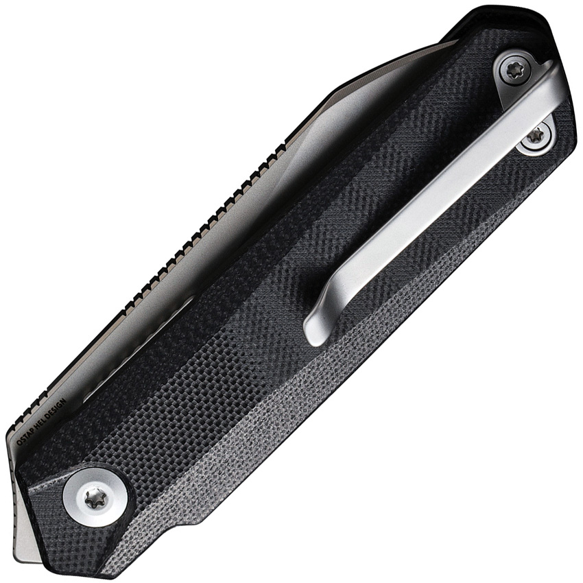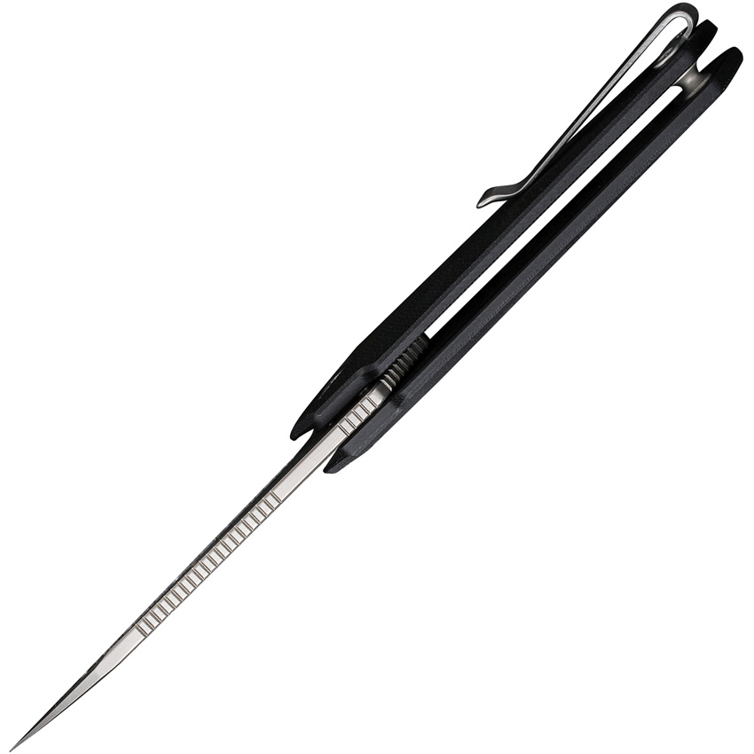 3.63″ (9.22cm) closed. 2.5″ (6.35cm) bead blast finish Nitro V steel blade. Black G10 handle. Extended tang. Pocket clip. Black nylon zippered storage case. Boxed.